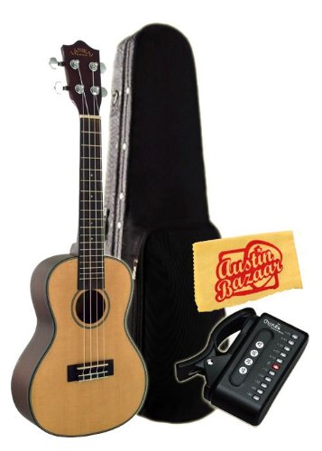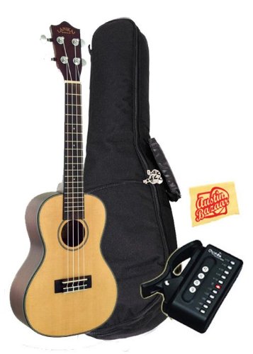 Bundle includes Lanikai S-C Spruce Series Concert Ukulele with Gig Bag, Cherub Tuner, and Polishing Cloth.